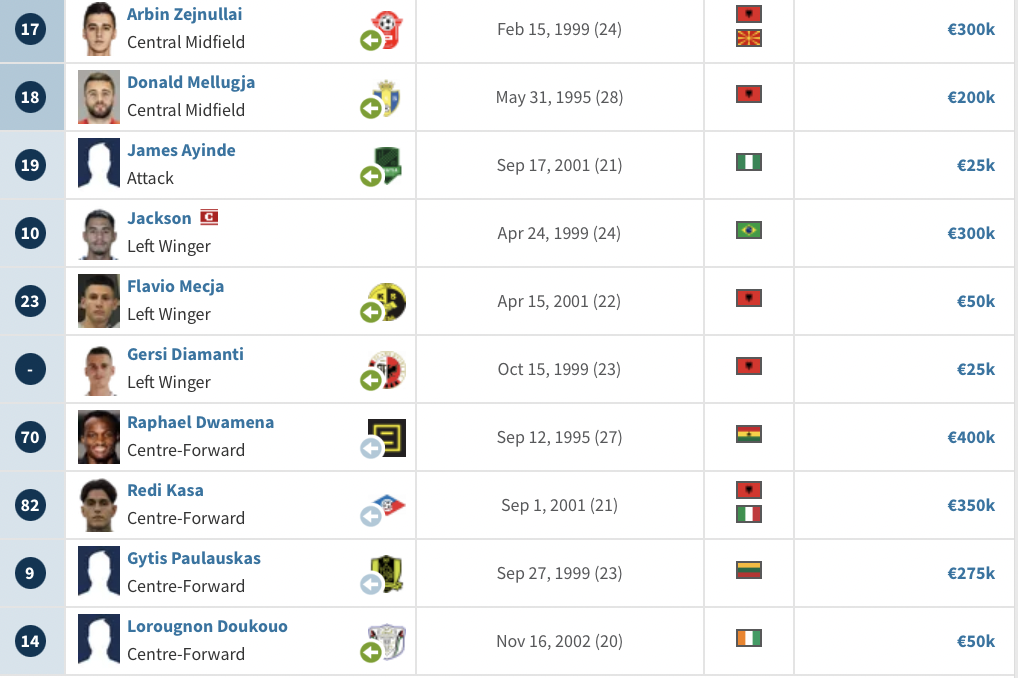 Η αλβανική ομάδα, έχει χρηματιστηριακή αξία 4.5 εκατομμυρίων ευρώ, 6.5 φορές λιγότερη από αυτή του Άρη.