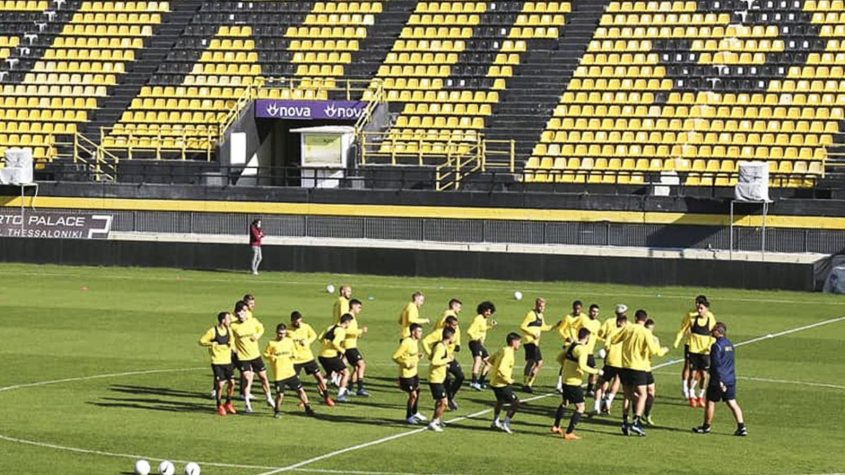 Στο «Κλεάνθης Βικελίδης» προπονήθηκαν σήμερα το πρωί οι παίκτες των κιτρινόμαυρων.