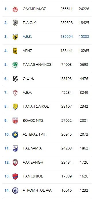 Ακόμη ο Άρης είναι και.. πενταψήφιος, καθώς είχε 10.265 εισιτήρια μέσ όρο.