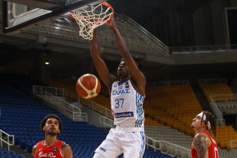 Την παράσταση έκλεψε στο πρώτο ημίχρονο ο Κώστας Αντετοκούνμπο με το κάρφωμα του ενάντια στο Πουέρτο Ρίκο.