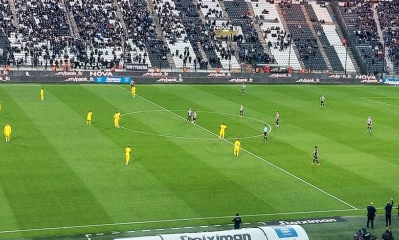 Σα να μην συνέβη τίποτα… Ενα γυάλινο μπουκάλι πετάχτηκε μέσα στον αγωνιστικό χώρο και “πήγε” στον βοηθό. Εκείνος έπιανε το κεφάλι του αλλά το παιχνίδι συνεχίστηκε κανονικά. Αυτό, προφανώς, δεν θα συνέβαινε, αν το ίδιο περιστατικό γινόταν στο “Κλεάνθης Βικελίδης”.