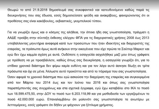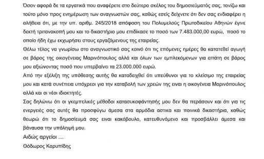 Δείτε το χαρακτηριστικό εξώδικο που έχει αποστείλει για συγκεκριμένο δημοσίευμα (fmvoice.gr) και τι αναφέρει: