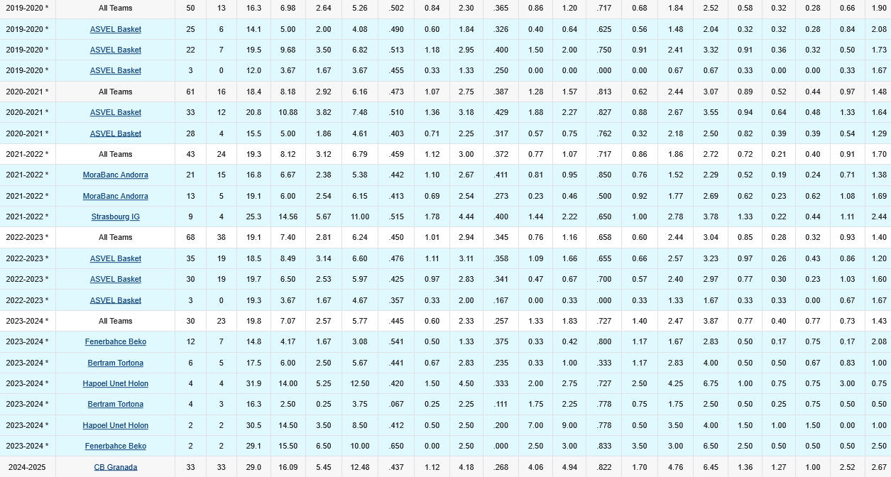 Πέρυσι (2024-25) επέστρεψε στην Ισπανία για λογαριασμό της Granada, με την οποία έκανε την καλύτερη σεζόν της καριέρας του, μετρώντας 16.1 πόντους, 6.5 ριμπάουντ, 1.4 ασίστ και 1.3 κλεψίματα.