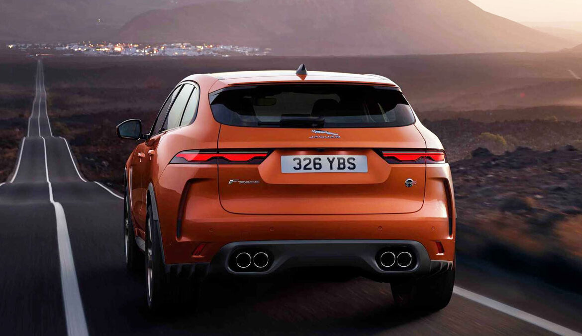 Στην ουρά έχουμε νέα φώτα LED με πιο τετραγωνισμένο σχήμα και πιο κομψή εσοχή για την πινακίδα στην πίσω πόρτα (όπως και στις υπόλοιπες ανανεωμένες F-Pace). Ο πίσω προφυλακτήρας διατηρεί τις πλευρικές εσοχές και τον διαχύτη με τις τετραπλές απολήξεις της εξάτμισης. Την εικόνα συμπληρώνουν οι νέες πεντάκτινες ζάντες 22″ σε Gloss Black με λεπτομέρειες Satin Gray.