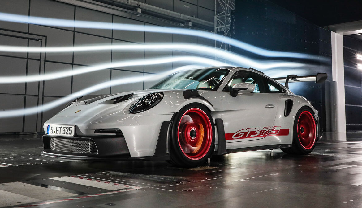 Ξεκινώντας από την αεροδυναμική, υπήρξε η σκέψη για την τοποθέτηση ενός κεντρικού ψυγείου, κάτι που χρησιμοποιήθηκε για πρώτη φορά στη βραβευμένη στην κατηγορία Le Mans 911 RSR και στη συνέχεια στην 911 GT3 R. Αυτό αποτέλεσε και το θεμέλιο των ενεργών αεροδυναμικών βοηθημάτων. Εκεί που στις συμβατικές εκδόσεις της 911 βρίσκεται ο εμπρόσθιος χώρος των αποσκευών, στη νέα Porsche 911 GT3 RS εδράζεται ένας μεγάλος εναλλάκτης θερμότητας, υπό κλίση.
