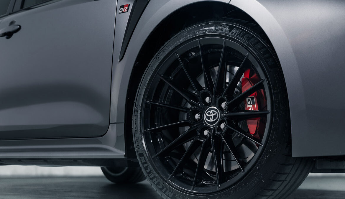 Το μοντέλο βασίζεται σε μια ενισχυμένη έκδοση της πλατφόρμας TNGA-C η οποία προσφέρει αυξημένη ακαμψία. Mπροστά, χρησιμοποεί γόνατα McPherson ενώ πίσω βρίσκονται πλέον διπλά ψαλίδια. Όπως είναι φυσικό, η ανάρτηση έχει δεχθεί τις απαραίτητες επεμβάσεις με τον κατασκευαστή να υπόσχεται ότι προσφέρει μέγιστη σταθερότητα και ευελιξία. Η GR Corolla πατάει στην άσφαλτο με μαύρες ζάντες 18″ και ελαστικά Michelin Pilot Sport 4. Το έργο της ακινητοποίησης αναλαμβάνουν 4πίστονες δαγκάνες με δίσκους 457 mm εμπρός και 2πίστονες δαγκάνες με δίσκους 406 mm πίσω.