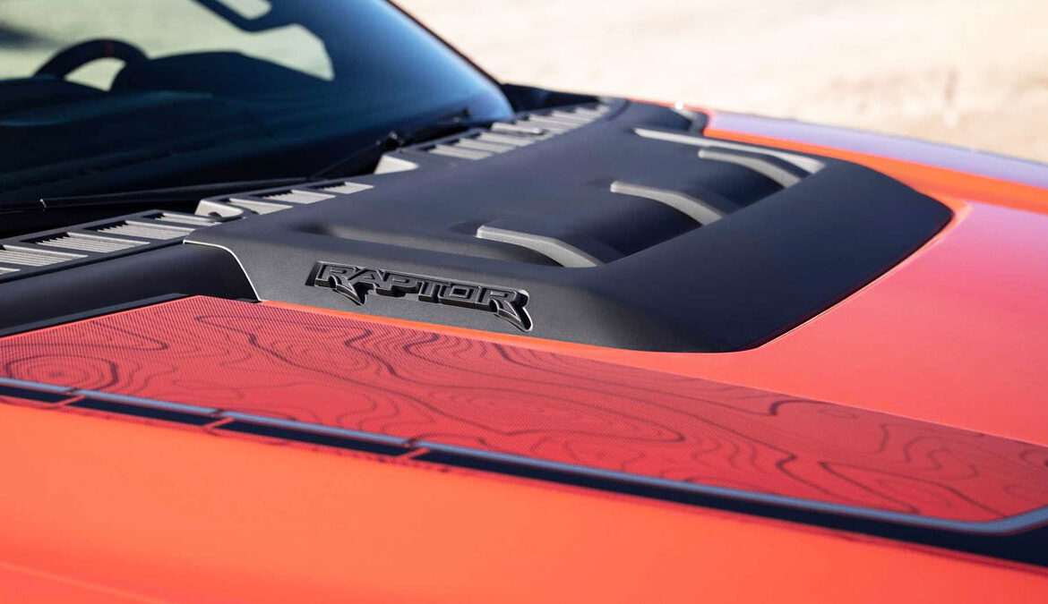 Ξεχωρίζει πάντως από τα υπόλοιπα F-150 χάρη στη νέα μάσκα (μαύρη γρίλια με επιγραφή Ford, σκουρόχρωμα φώτα LED, εκτός δρόμου προφυλακτήρας με προστατευτική ποδιά), το φούσκωμα στο καπό με την εισαγωγή αέρα, τις προεκτάσεις στα φτερά, τη διαφορετική πόρτα καρότσας, τις διπλές απολήξεις της εξάτμισης και το νέο πίσω προφυλακτήρα.