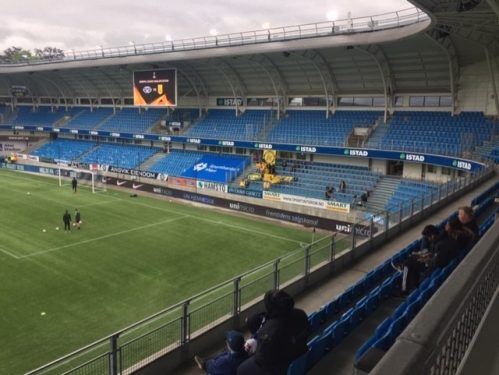 Τις θέσεις τους στο Aker Stadion παίρνουν σιγά σιγά οι φίλοι του Άρη δημιουργώντας το δικό τους “κίτρινο” πέταλο.