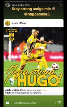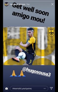 Ευχές για τον Ούγκο Σόουζα ανάρτησαν οι συμπαίκτες του, Θωμάς Ναζλίδης και Χάρης Σταμπουλίδης, στα social media.