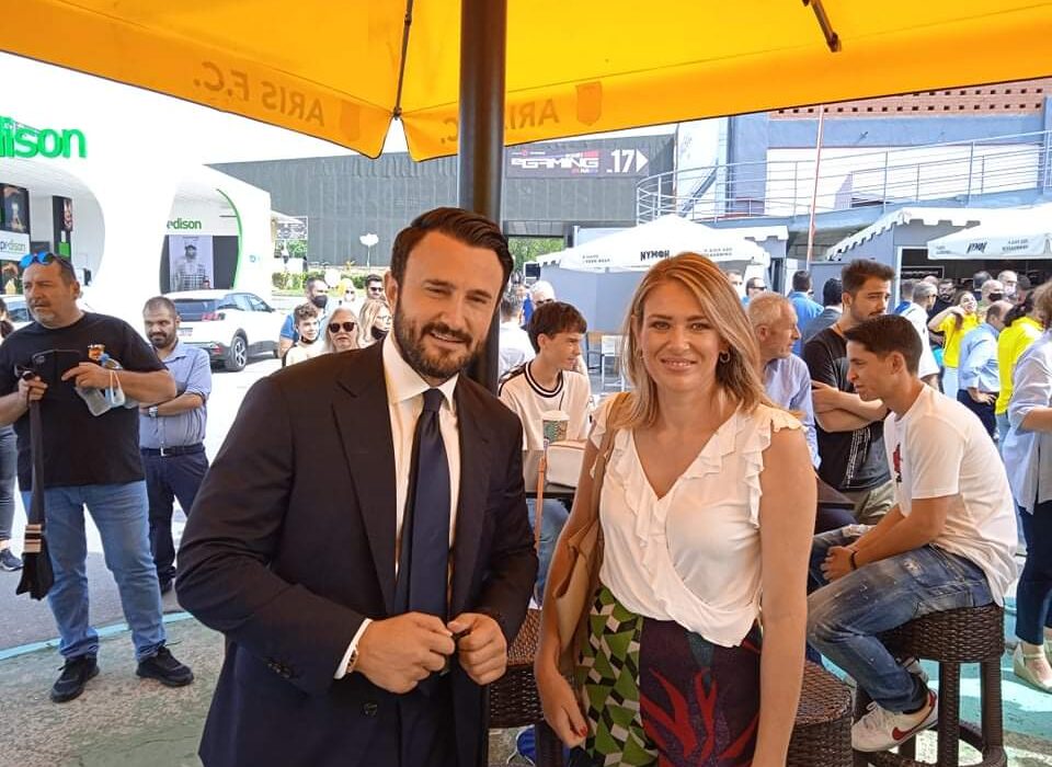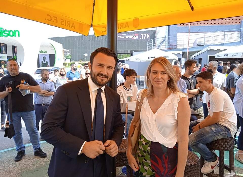 Η Άννα Ευθυμίου με τον Θεόδωρο Καρυπίδη στο περίπτερο του Άρη στην ΔΕΘ (photos)