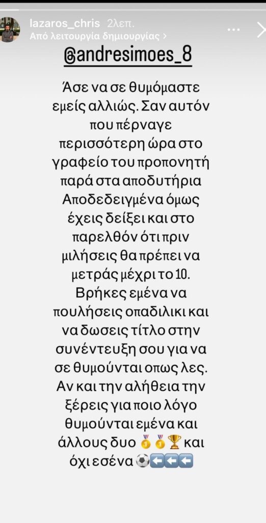 Αιχμηρός και ξεκάθαρος ήταν ο Λάζαρος Χριστοδουλόπουλος μέσω ανάρτησής του στα social media και απευθυνόμενος στον Αντρέ Σιμόες.