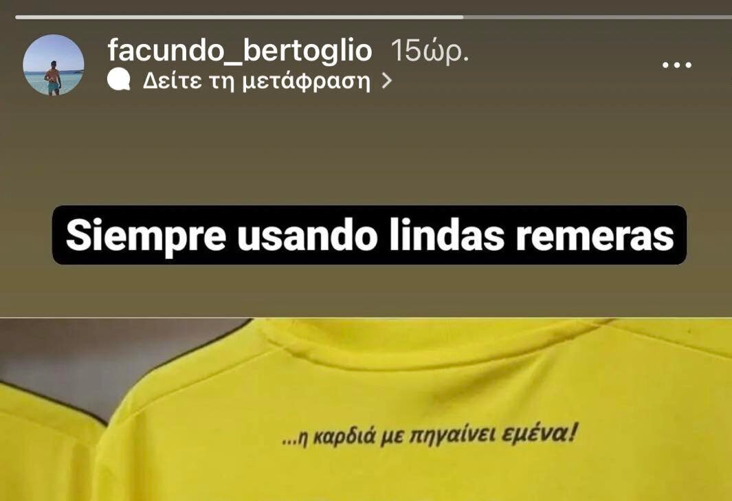 Η ανάρτηση του Μπερτόγλιο με τη φανέλα του Άρη και το… κοπλιμέντο