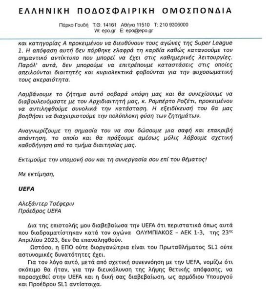 Η απάντηση του Τσέφεριν στην ΕΠΟ για ξένους διαιτητές (pics)