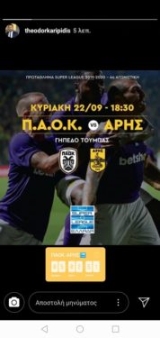 Η ΠΑΕ Άρης δημοσίευσε στον επίσημο λογαριασμό της στο Facebook την αφίσα για τον αγώνα της Κυριακής στην Τούμπα.