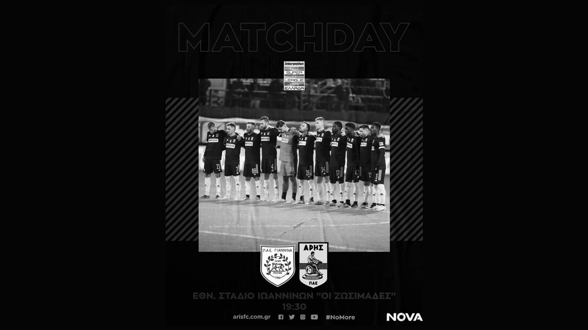 Σε μαύρο πένθιμο φόντο είναι η αφίσα της ΠΑΕ Άρης για την προαναγγελία του σημερινού αγώνα με τον ΠΑΣ στα Γιάννενα.