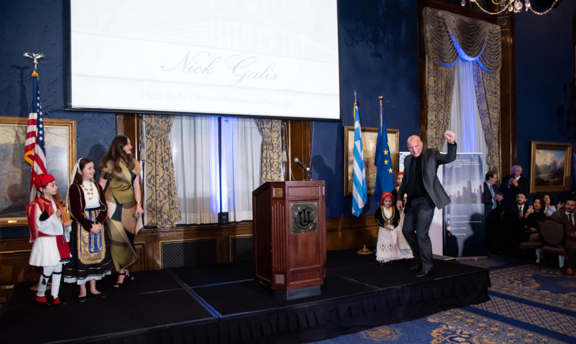 Το Γενικό Προξενείο της Ελλάδος στο Σικάγο παρέθεσε δεξίωση στο πλαίσιο των εορτασμών για την 25η Μαρτίου, με τιμώμενο πρόσωπο τον Νίκο Γκάλη και τον Θόδωρο Καρυπίδη να παρακολουθεί διακριτικά την εκδήλωση.