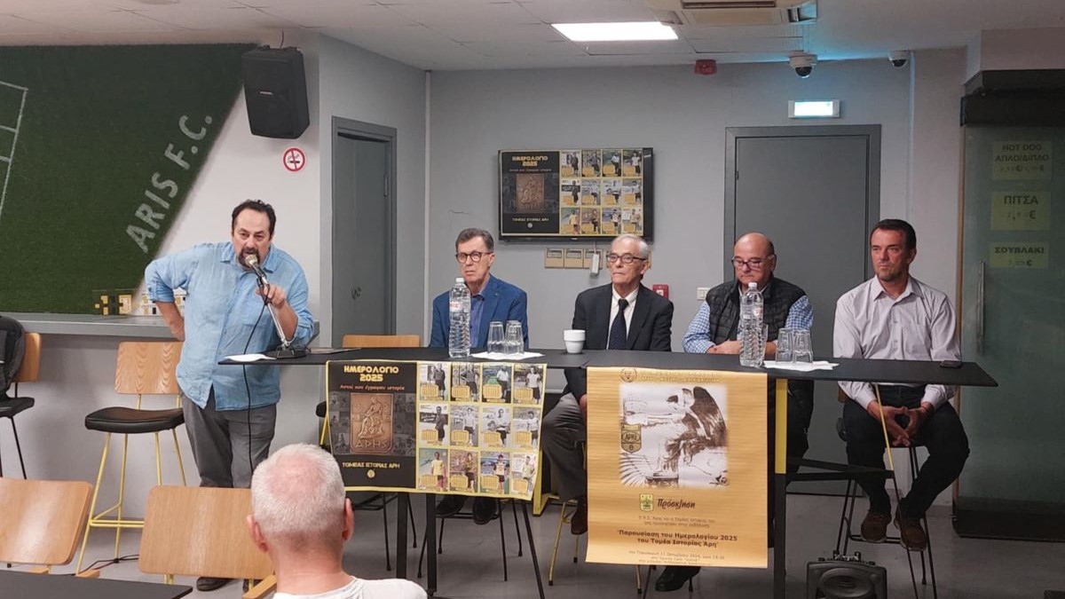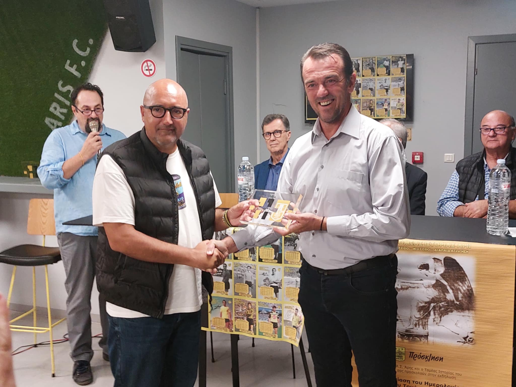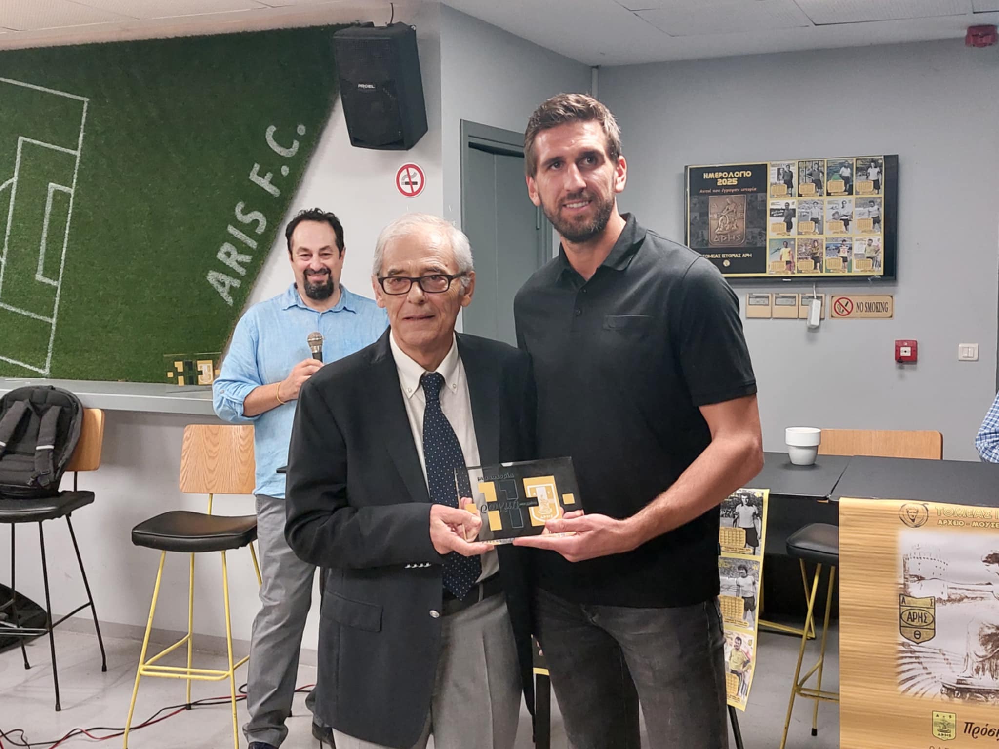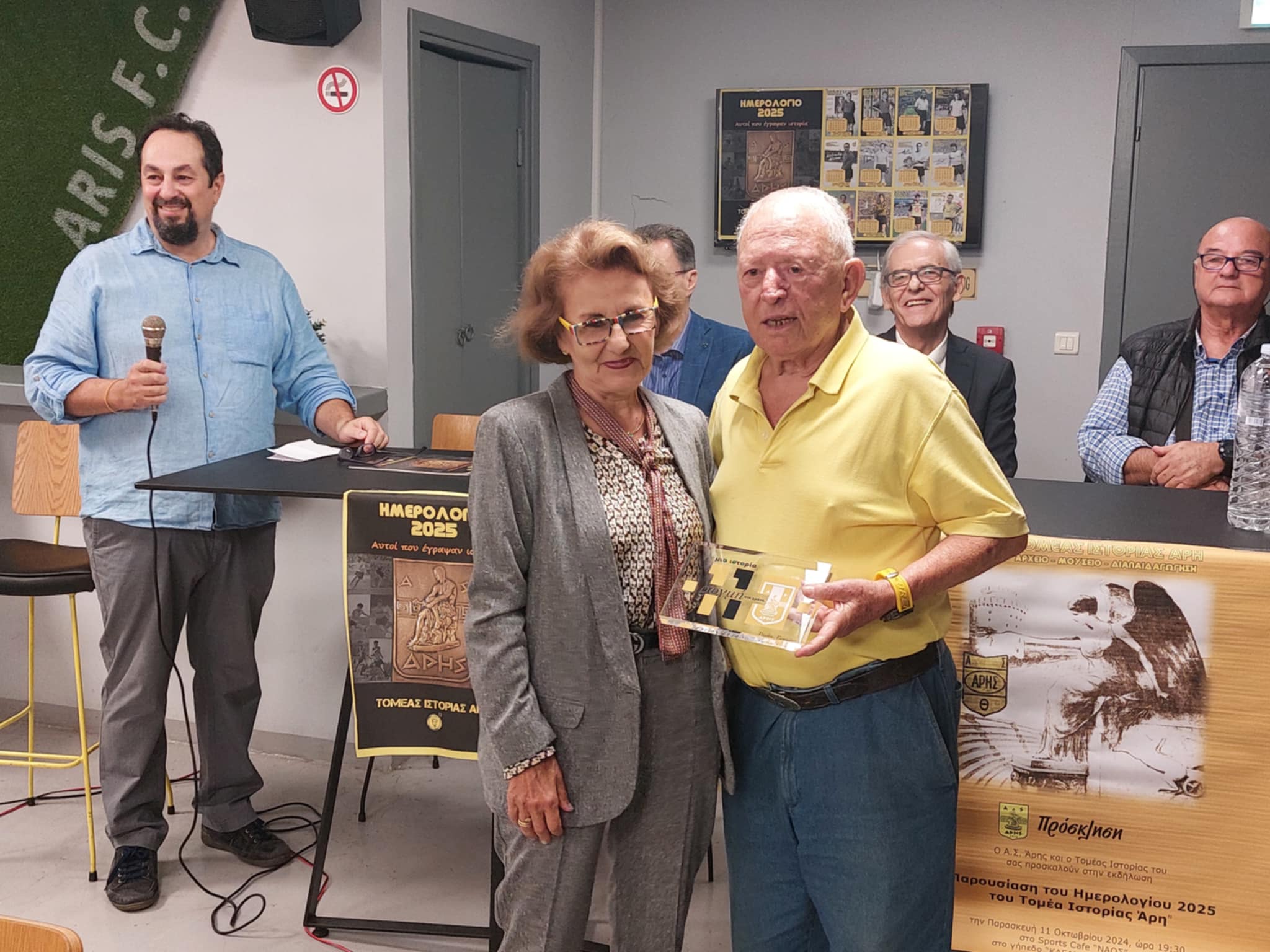 Η κόρη του πρώην θρύλου του Άρη, Κλεάνθη Βικελίδη, Κατερίνα, βραβεύει τον παλαίμαχο ποδοσφαιριστή των κιτρινόμαυρων, Βασίλη ΨηφίδηΟ βετεράνος γκολκίπερ του Άρη, Νίκος Χρηστίδης,παραδίδει το βραβείο στον αρχηγό της ποδοσφαιρικής ομάδας και ρέκορντμαν συμμετοχών ξένο ποδοσφαιριστή με την κιτρινόμαυρη φανέλα, Χουλιάν ΚουέσταΟ γενικός αρχηγός των τμημάτων υποδομής του ποδοσφαιρικού Άρη, Παναγιώτης Αλεξιάδης, δίνει την τιμητική πλακέτα στον παλαίμαχο ποδοσφαιριστή των κιτρινόμαυρων, Γιώργο Κολτσίδα Ο υπεύθυνος Γραφείου Τύπου της ΠΑΕ Άρης, Δημήτρης Πιπερίδης, δίνει την τιμητική πλακέτα στον δημοσιογράφο και ιστορικό του Συλλόγου, Κωνσταντίνο Ίντο