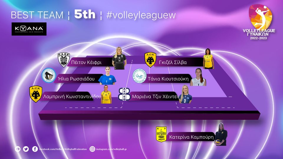 Κεντρικές: Τάνια Κιουτσιούκη (ΑΟ Θήρας) 16 πόντους (10/10 επ., 6 μπλοκ), Ήλια Ρωσσιάδου 8 πόντους (1/4 επ., 2 άσσοι, 4 μπλοκ)