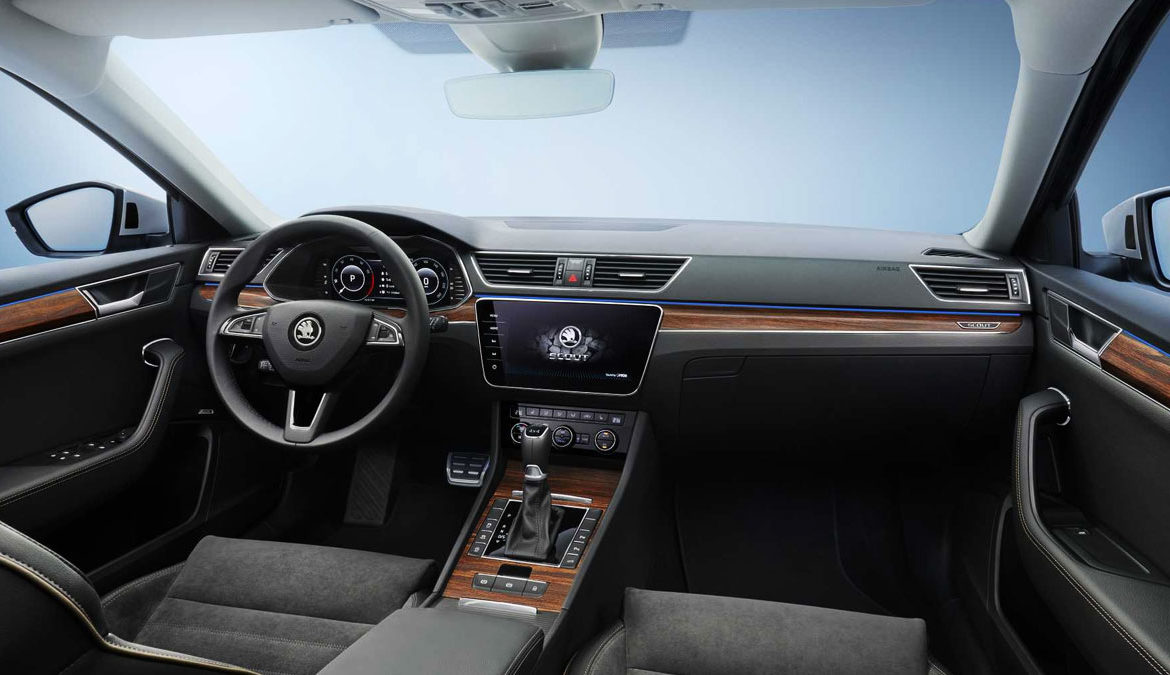 Η αισθητική της καμπίνας δεν διαφοροποιείται σημαντικά σε σχέση με την απλή Octavia. Οι αλλαγές εντοπίζονται στις επενδύσεις, την καφέ ραφή και το ξύλινο διακοσμητικό στο ταμπλό. Ο ψηφιακός πίνακας οργάνων και η μεγάλη οθόνη αφής ενσωματώνουν πληθώρα λειτουργιών και υπηρεσιών συνδεσιμότητας.
