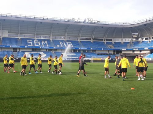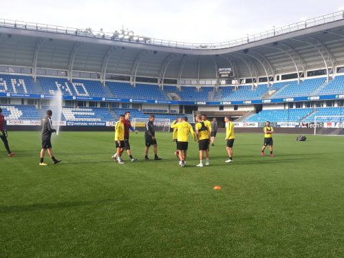 Άφού ολοκληρώθηκε η συνέντευξη τύπου, σειρά είχε η προγραμματισμένη προπόνηση για την ομάδα του Άρη στο γήπεδο της Μόλντε που θα είναι και η τελευταία πριν την αυριανή αναμέτρηση.