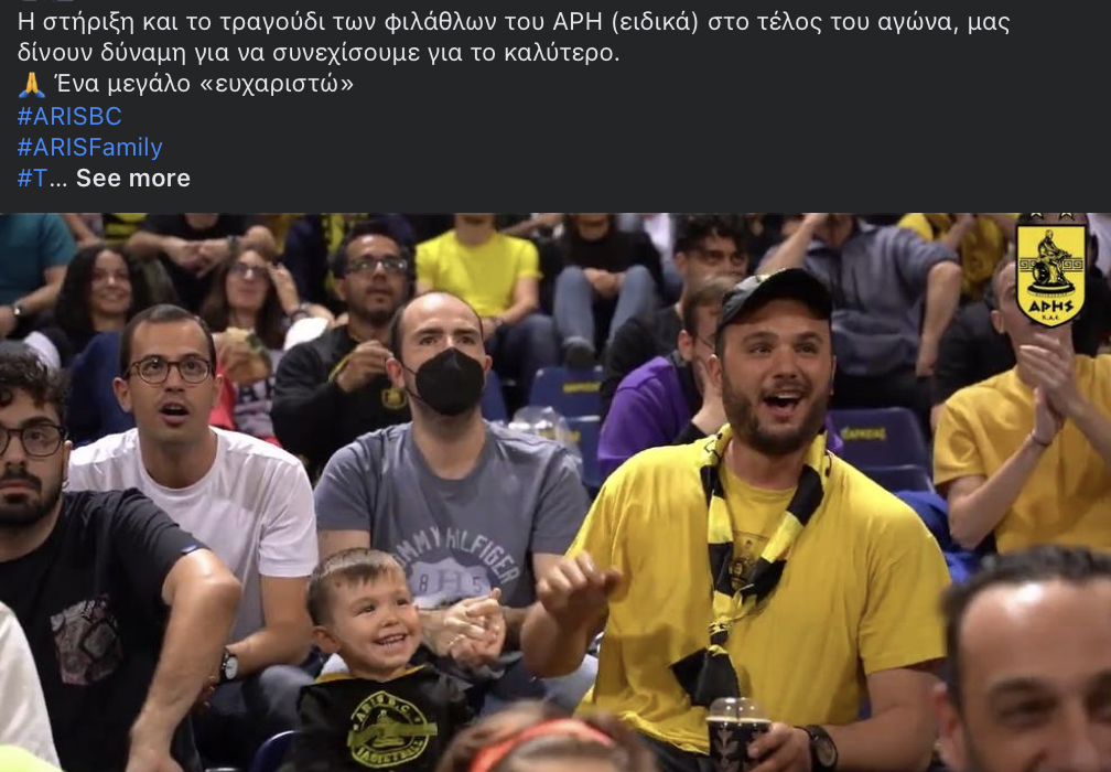 H KAE Άρης με δημοσίευσή της στα social media ευχαρίστησε τον κόσμο του Άρη για την παρουσία του στο “Nick Galis Hall”.