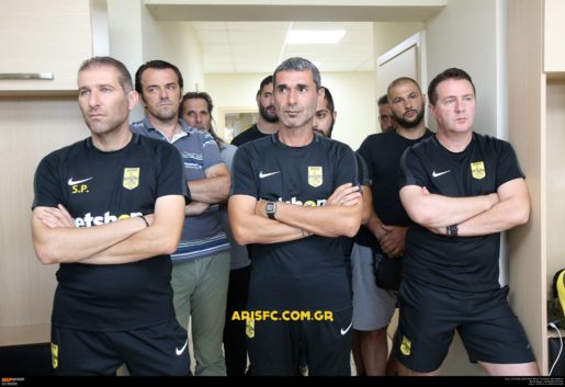 Τον Άγγελο Χαριστέα παρουσίασε στους ποδοσφαιριστές, πριν ξεκινήσει η προπόνηση, ο πρόεδρος της ΠΑΕ ΑΡΗΣ, Θόδωρος Καρυπίδη: