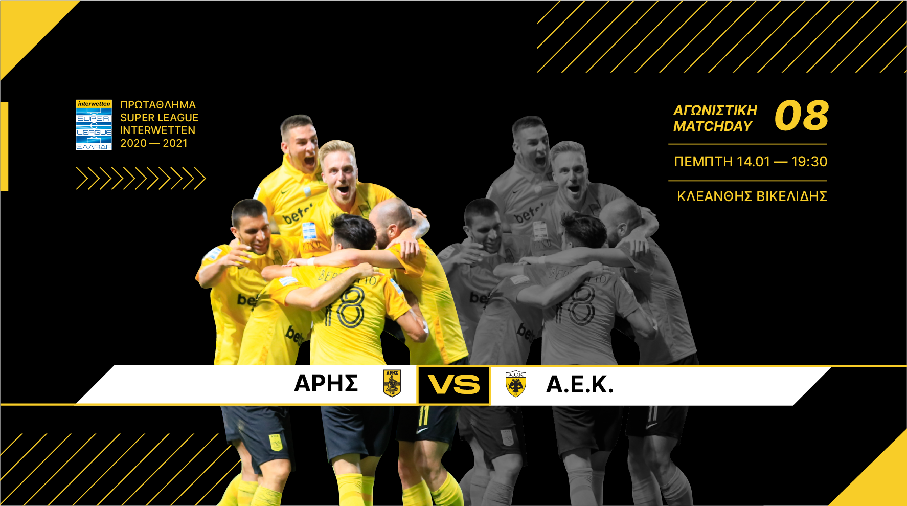 Ο Άρης υποδέχεται την ΑΕΚ στο Χαριλάου στο εξ αναβολής ντέρμπι της 8ης αγωνιστικής την Πέμπτη (14/1, 19:30), με την ΠΑΕ Άρης να δημοσιεύει την αφίσα προαναγγελίας της εν λόγω αναμέτρησης.