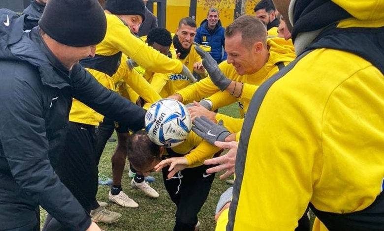 Το… πρόσωπο της σημερινής προπόνησης ήταν ο Γιάννης Φετφατζίδης, που έχει σήμερα γενέθλια. Οι συμπαίκτες του τού έκαναν έκπληξη με τούρτα ενώ δεν έλειψαν και τα «πειράγματα».