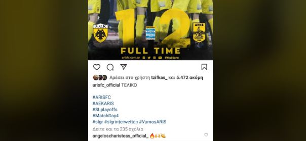 O Aγγελος Χαριστέας έστειλε ένα ιδιαίτερο μήνυμα στον επίσημο λογαριασμό του Άρη στο instagram, για το “διπλό” στην ΑΕΚ. Ο παλαίμαχος παίκτες έδειξε την χαρά του γι’ αυτό το αποτέλεσμα (1-2) με σχόλιο που “άφησε”.