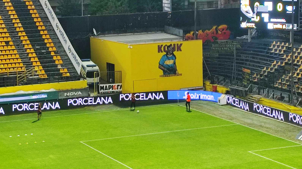 Δείτε το γκράφιτι δίπλα από τη θύρα 3 του γηπέδου.