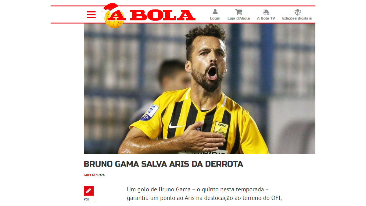 Δημοσιογραφική διάσταση στην «A Bola» πήρε η πρόκριση του Άρη επί του ΟΦΗ.