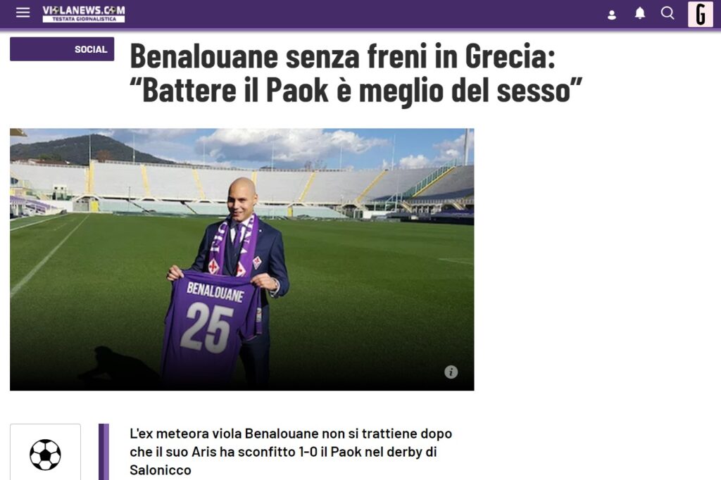 Άφησε καλό όνομα εκεί και είναι αλήθεια ότι συχνά-πυκνά υπάρχουν ιταλικά ρεπορτάζ γι’ αυτόν. Η ανάρτηση που έκανε μετά το διπλό του Άρη στην Τούμπα, δεν πέρασε απαρατήρητη στη γειτονική χώρα, όπου υπάρχει σχετική αναφορά σε ιστοσελίδα, που ασχολείται κυρίως με το ρεπορτάζ της Φιορεντίνα.