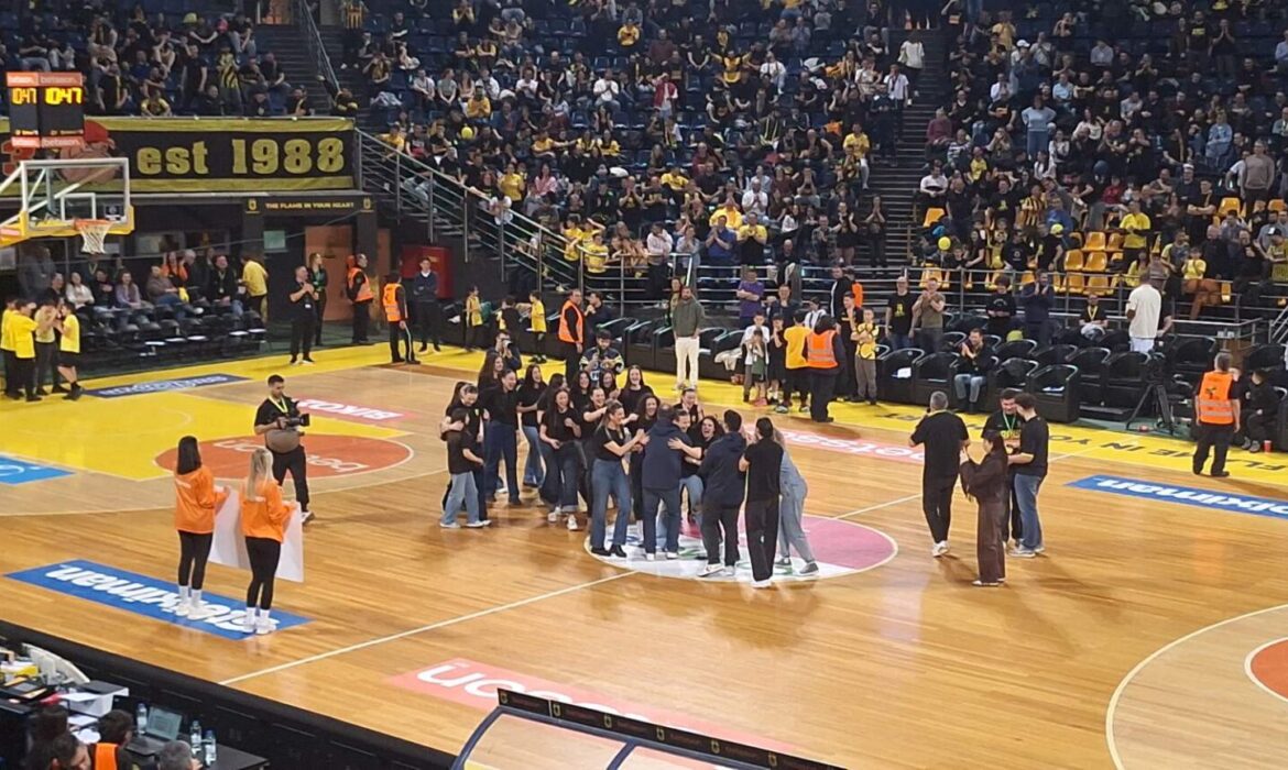 Η γυναικεία ομάδα μπάσκετ του Άρη παρευρέθηκε στο Nick Galis Hall, δεχόμενη ζεστό χειροκρότημα εν όψει του αυριανού αγώνα της, ανήμερα της παγκόσμιας ημέρας της γυναίκας.