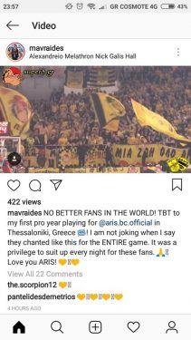 Παρόλα αυτά δεν “ξέχασε” τον κόσμο του Άρη, καθώς ανέβασε στο instagram φωτογραφία στην οποία…αποθεώνει τον κόσμο της ομάδας τον οποίο χαρακτήρισε ως καλύτερο στον κόσμο