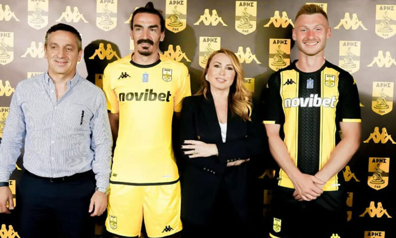 Ο Άρης παρουσίασε τις νέες φανέλες της ομάδας για την αγωνιστική περίοδο 2023-2024.