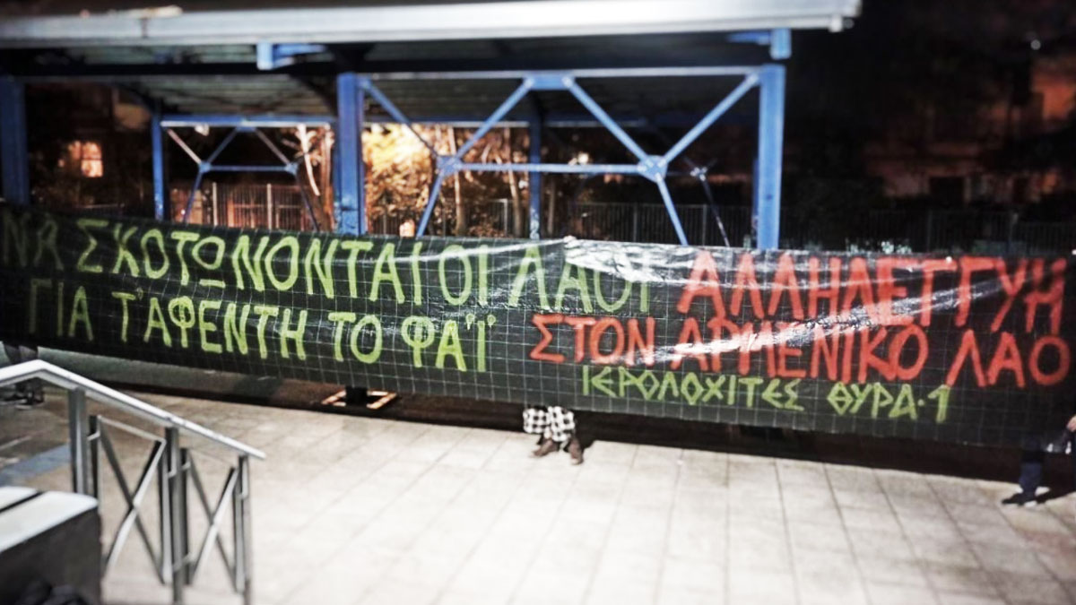 Ιερολοχίτες: “Να σκοτώνονται οι λαοί για τ’ αφέντη το φαΐ – Αλληλεγγύη στον Αρμένικο λαό” (photo)
