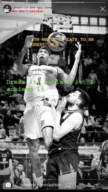 Ο 28χρονος σέντερ ανάρτησε στο προσωπικό του λογαριασμό στο Instagram φωτογραφία από παιχνίδι με τον Αυτοκράτορα γράφοντας τα δικά του μηνύματα.