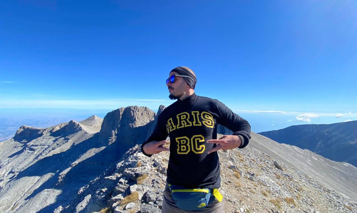 Κάνει… κρύο στην κορυφή! Φίλος του Άρη έφτασε στο υψηλότερο σημείο του Ολύμπου στα… “κιτρινόμαυρα”