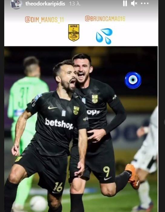 Αυτό δείχνει δημοσίευση του στα social media με φωτογραφία που έχει σε πρώτο πλάνο τον σκόρερ του ντέρμπι, Μπρούνο Γκάμα μαζί με ένα «μάτι»!