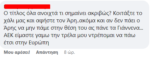 Αυτό που συμβαίνει είναι οφθαλμοφανές, με όσους δεν φορούν παρωπίδες να μην έχουν άλλη επιλογή από το να το δούνε. Μάλιστα αρκετοί φίλοι της ΑΕΚ -ακόμη και αν δεν είναι η πλειοψηφία- εκφράζουν ανοιχτά την δυσαρέσκεια τους.