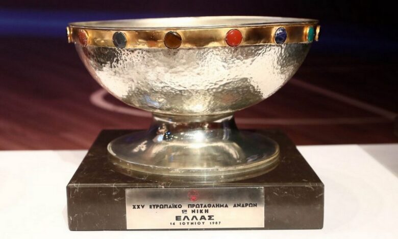 Η επόμενη στάση τους θα είναι ένας ακόμη χώρος που έχει γραφτεί ιστορία: Το «Αλεξάνδρειο Μέλαθρο». Ένα γήπεδο το οποίο φιλοξένησε αγώνες που έβαλαν την… πορτοκαλί μπάλα σε κάθε ελληνικό σπίτι. Το να βρουν την δική τους θέση τα δύο αυτά Κύπελλα σε ένα ιστορικό γήπεδο, στο οποίο το μπάσκετ έχει γνωρίσει μεγάλες στιγμές που έφεραν κοντά στο αγαπημένο μας άθλημα χιλιάδες φιλάθλους, μοιάζει ιδανικός συνδυασμός. Οι δύο κούπες που έβγαλαν τον κόσμο πανηγυρίζοντας στους δρόμους όλης της Ελλάδας στις 14 Ιουνίου 1987 και στις 25 Σεπτεμβρίου 2005 θα είναι στο Παλέ ντε Σπορ της Θεσσαλονίκης στις 28 Νοεμβρίου από τις 15.00 και ως το τέλος της αναμέτρησης της Εθνικής Ανδρών με τη Λευκορωσία για την προκριματική φάση του Παγκοσμίου Κυπέλλου 2023»”.