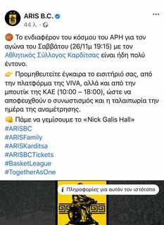 Αρχική/Μπάσκετ/ΚΑΕ Άρης: “Πάμε να γεμίσουμε το Nick Galis Hall”(photo) Μπάσκετ ΚΑΕ Άρης: “Πάμε να γεμίσουμε το Nick Galis Hall”(photo) YellowRadio.gr Follow on X Send an email 23 Νοεμβρίου 2022 - 14:20Τελευταία ενημέρωση: 23 Νοεμβρίου 2022 - 14:08 Λιγότερο από ένα λεπτό Facebook X WhatsApp Viber Μοιραστείτε μέσω Ε-mail Ομάδα επιχειρηματιών δίπλα στην ΚΑΕ! Οικονομικές «ανάσες» και διάθεση για το μέλλον Κάλεσμα στον κόσμο των κιτρινόμαυρων ενόψει της αναμέτρησης κόντρα στην Καρδίτσα (26/11 19:15)έκανε η ΚΑΕ Άρης μέσω των social media. ΕτικέτεςΑΡΗΣ ΜΠΑΣΚΕΤ YellowRadio.gr Follow on X Send an email 23 Νοεμβρίου 2022 - 14:20Τελευταία ενημέρωση: 23 Νοεμβρίου 2022 - 14:08 Λιγότερο από ένα λεπτό Facebook X WhatsApp Viber Μοιραστείτε μέσω Ε-mail Κοινοποίηση Facebook X WhatsApp Viber Μοιραστείτε μέσω Ε-mail Εκτύπωση