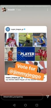 Ο Αυστραλός χαφ του Άρη είναι ένας από τοςυ υποψηφίους για το βραβείο του πολυτιμότερου παίκτη για τον μήνα Οκτώβριο στο πρωτάθλημα και ο Γάλλος συμπαίκτης του παροτρείνει και τους οπαδούς της ομάδας να κάνον το ίδιο.