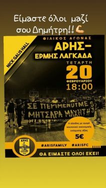Ο καλαθοσφαιριστής των κιτρινόμαυρων ανέβασε στον προσωπικό του λογαριασμό μια εικόνα με την αφίσα του αγώνα, στέλνοντας το μήνυμα: “Είμαστε όλοι μαζί σου Δημήτρη”.