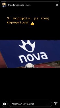 Ο Θεόδωρος Καρυπίδης λίγες ώρες μετά την επίσημη συνεργασία του Άρη με το συνδρομητικο κανάλι της Nova ανάρτησε στα social media ένα μικρό αλλά μεγάλης σημασίας σχόλιο