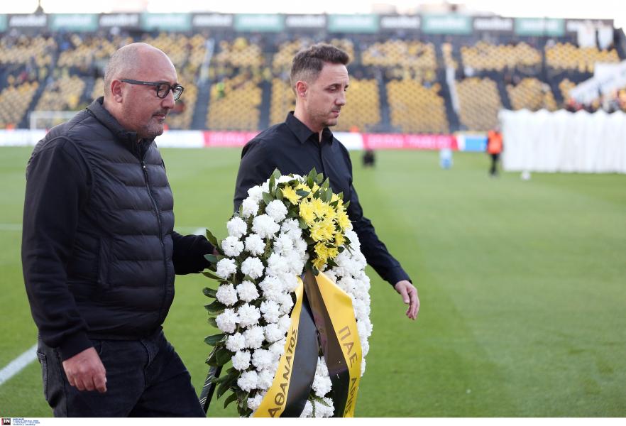 Συγκεκριμένα, ο γενικός αρχηγός των «κιτρινόμαυρων», Γιώργος Γκουγκουλιάς, συνοδευόμενος από τον γιο του θρυλικού ποδοσφαιριστή, Πάνος Αλεξιάδης, κατέθεσαν στεφάνι μπροστά στην θύρα 3 του «Κλεάνθης Βικελίδης».