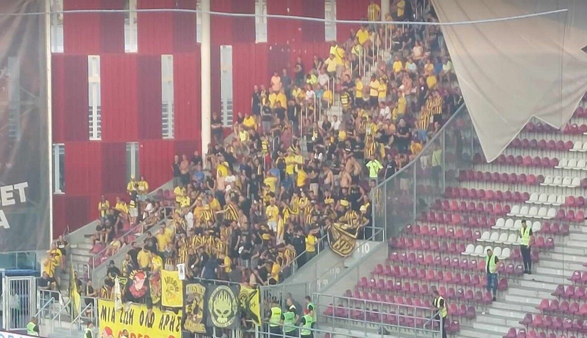Ηδη στο γήπεδο του Βουκουρεστίου, είναι οι οπαδοί του Άρη. Το πέταλο στο οποίο θα βρίσκονται οι φίλοι των “κιτρίνων”, αρχίζει να “κιτρινίζει”. Στη παρούσα φάση, σε τρία σημεία βρίσκονται οι οπαδοί του Άρη, που ετοιμάζονται να δώσουν ώθηση για την πρόκριση.