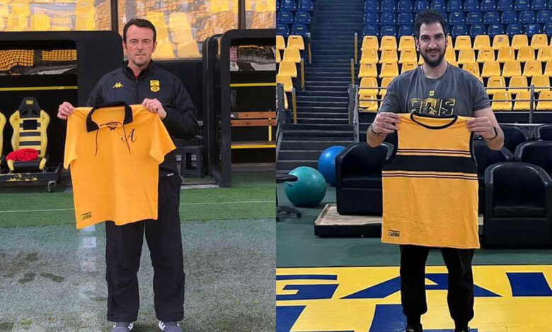 Η διάθεση των επετειακών φανελών του ΑΡΗ συνεχίζεται. Και δύο πρώην αθλητές που τίμησαν με την παρουσία τους τον σύλλογο και εξακολουθούν να προσφέρουν σ’ αυτόν, στέλνουν το μήνυμα.