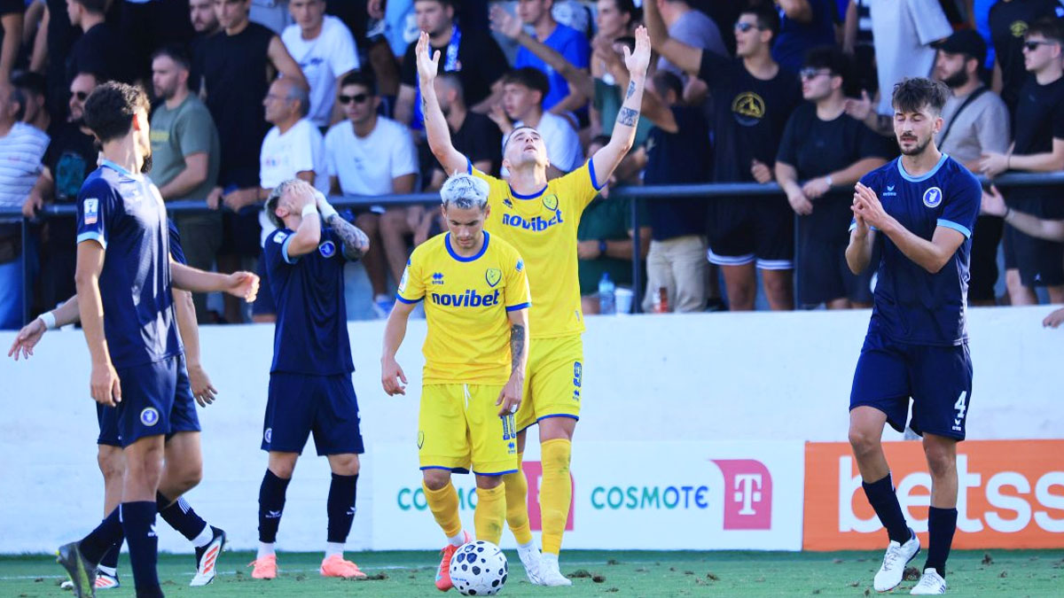 Ο Παναιτωλικός πέρασε με… περιπέτειες από την έδρα της Νίκης Βόλου, εξασφαλίζοντας την παρουσία του στη League Phase του Κυπέλλου Ελλάδας, χάρη σε γκολ του Αγκίρε στο φινάλε (1-2).
