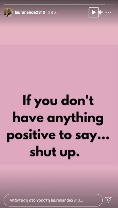 Με στόρι στον προσωπικό της λογαριασμό στο ίνσταγκραμ, ανέφερε: